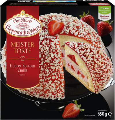 Ein verführerischer Genuss aus Erdbeere und Vanille. Hier trifft feinste Bourbon-Vanille-Sahne mit knackigen Schokocrispies auf frische Erdbeer-Sahne mit Fruchtstückchen. Für den extra Kick sorgt zudem eine Füllung aus fruchtigem Erdbeermousse. Zart umhüllt wird diese Komposition von einem fruchtigen Erdbeerspiegel, der mit weißen Schokostückchen bestreut ist - ein Genuss zum Dahinschmelzen.